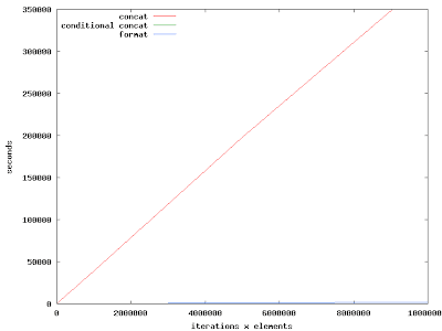 Вы только подумайте, что все, кроме последнего пункта выполняются даже при выключенном логировании отладочной информации. Даже, если учитывать то, что компилятор оптимизирует конкатенацию строк и заменит ее на StringBuilder, накладные рассходы могут быть просто коллосальными при условии, что список немаленький и объекты в списке имееют перегруженные методы toString().